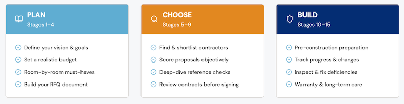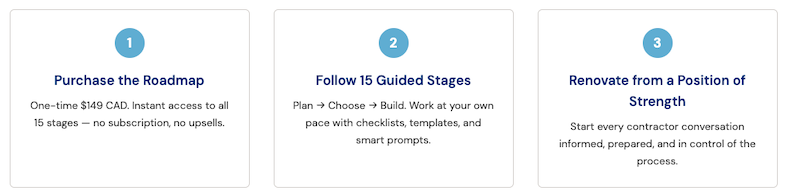 The buy better® Home Renovation Roadmap is a 15-stage system that helps you plan your renovation, get quotes, compare contractors, and protect your investment - before you commit to anything.